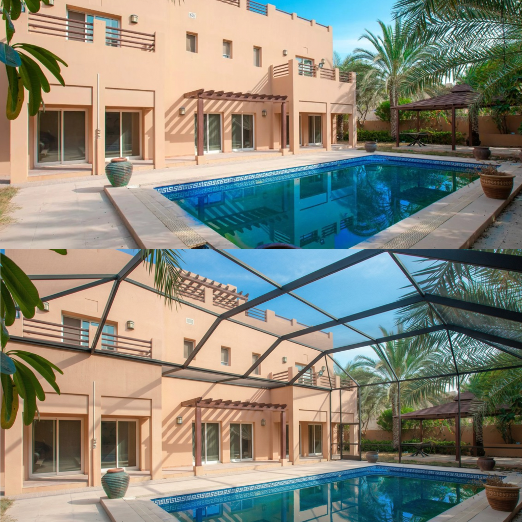 Yes. Evidence from mature markets like Florida, where pool enclosures are standard, shows they do add value and improve resale appeal. Real estate studies and broker data commonly indicate that screened pool enclosures can contribute approximately 5–10% to perceived home value, while also reducing buyer objections related to insects, safety, and maintenance. Homes with enclosed pools in Florida also tend to sell faster, as buyers value the extended usable outdoor living space and lower ongoing upkeep. In Dubai—where outdoor comfort is a premium—this benefit is increasingly recognised as more homeowners prioritise year-round usability and lifestyle upgrades.